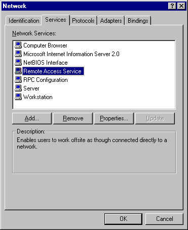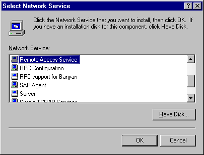 Highlight Remote Access Service and click on OK. You