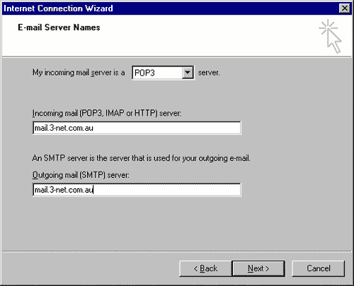 7).Incoming mail server (POP3) is: mail.3net.com.au